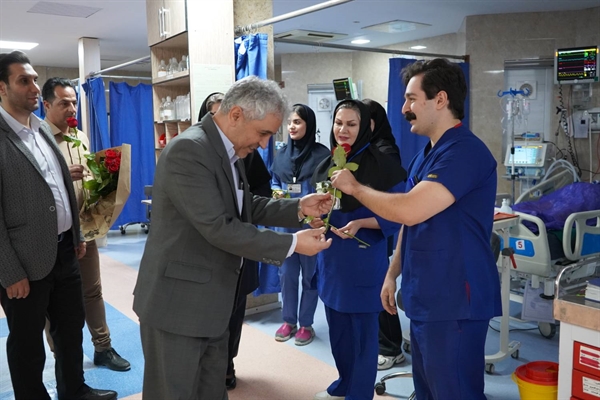 در بخش دیگری از بازدیدهای رئیس دانشگاه علوم پزشکی ایلام به مناسبت روز پرستار، دکتر عباس قیصوری با حضور در بخش ICU بیمارستان امام خمینی(ره) شهر ایلام، با اهدای شاخه گل به پرستاران این بخش، از زحمات آنان قدردانی کرد.