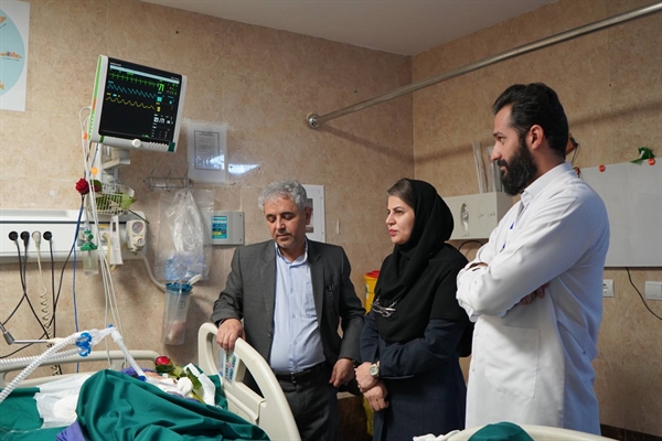 همچنین دکتر قیصوری از زهرا خیدان، پرستار شاغل در بیمارستان سرابله که چندی پیش دچار سانحه تصادف شده بود، عیادت کرده و با آرزوی بهبودی سریع برای این پرستار خدوم، از نزدیک در جریان اقدامات درمانی و مراقبتی انجامشده برای وی قرار گرفت.